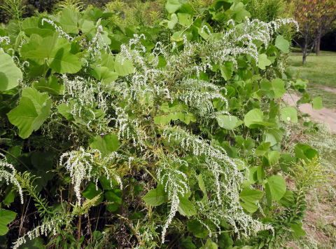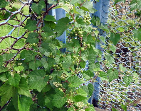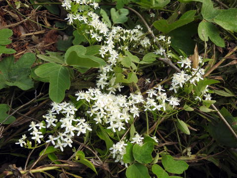 「つる植物」は茎が木や他の草に巻きついたり,巻きひげ・気根・トゲなどでものにひっかかり立ちあがる植物。観音崎にはいろいろなつる植物が自生していますが,園地や園路沿いのものは,自称正義漢や管理業者の手で茎を切断されたりして取り除かれてしまう山野の嫌われ者です。 そんな嫌われ者も生命力は逞しく,季節になると意外に美しい可憐な花や実をつけて,私たちの目を和ませてくれます。花や実のない時期のつる植物は,樹木や草花に比較して特徴がつかみにくいため,類似した種類も多いこともあり,名前を知るのに結構苦労しますが,そんなつる植物の輝いている瞬間をお届けしたいと思います。 |