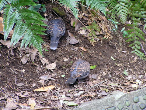 | 市街地の公園や駅前広場,神社仏閣の庭園等で見かけるドバトは,人懐こく群れていることが多いが,キジバトは人を恐れないものの,人とある程度の距離を保ち,一羽かつがいでいることが多く,群れているのは見たことがない。 観音崎公園内で見かけるキジバトもほとんどがつがいで,その仲の良さは鳥ながらヤキモチを焼きたくなるような雰囲気がある。仲の良い夫婦をオシドリ夫婦というが,オシドリは動物園へでも行かないとお目にかかる機会もないので,キジバト夫婦あるいはヤマバト夫婦と呼んだ方が,若い人には解りやすいような気がする。 |