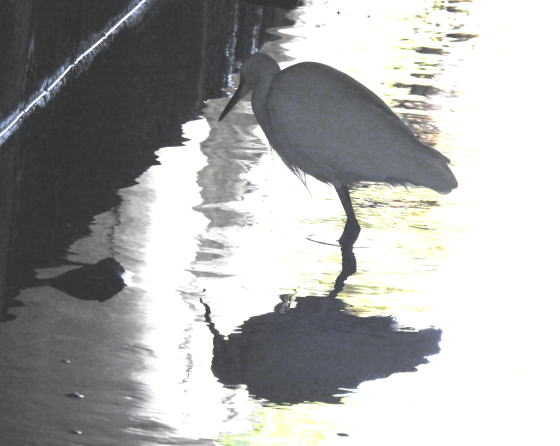 | この辺りがカワセミやキセキレイに出会える確率が高いスポット。理由は,エサが豊富にあり,川の両側に道がないこと。④鴨居小前ー⑤東橋間は和田川の中では比較的勾配が急で,魚道らしきものが設置されている辺りの段差が特に大きい,ここが汽水域の上限でもあるようです。そのため野鳥たちにとっては,汽水域と淡水域に棲む魚介類を少し移動するだけで採餌できる,便利な場所でもあるのでしょう。 | |