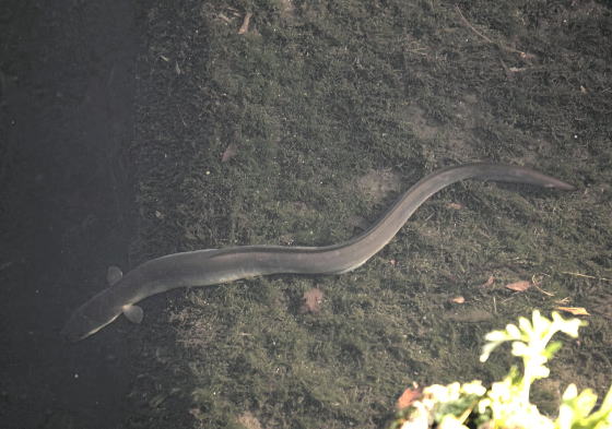 | 和田川にウナギが出没するようになって8年が経過。行政機関と地元町内会の和田川再生事業の成果もあって,今ではその数を増し20~30匹くらいいるのではと言う説もある。私は密漁を恐れてこれまで本サイト上で大きく取り上げてこなかったが,和田川のご近所に住むご夫婦がこのことをテレビ朝日の「ナニコレ珍百景」に投稿,2013年(H.25)10月27日に現地ロケが行われた。 11月27日放送では,連合町内会の会長・副会長,地元町内会長と投稿者のご夫婦が住民代表として経緯を再現・熱演,見事「珍百景に登録」された。これまでは,地元民だけが知る秘かな楽しみだったが,放送されたことで全国津々浦々とはいかないまでも近郷近在から見物客が押し寄せるに違いない。「蒲焼きにして食べてやろう!」そんな不心得者が現れないことを願うばかりである。 |