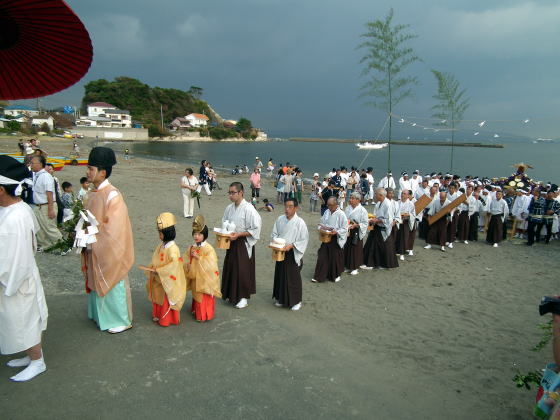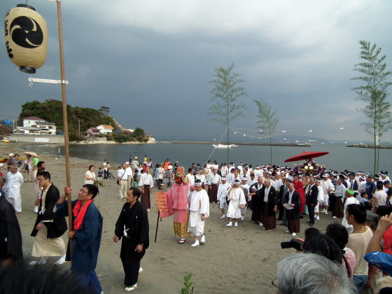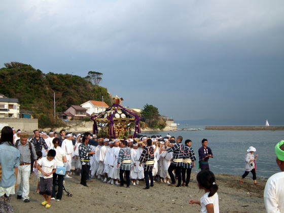 「横須賀時計塔のからくり人形が修復」との報に刺激され「とっぴきぴーおどり」のページを再編集中,八幡神社のページに「秋祭り」が掲載されていないことに気づいた。御祭神の譽田別尊(ほんだわけのみこと)(第15代應神天皇)には面目次第も無い話で弁解の余地はない。早速,作業に取りかかったが,合祀されている須賀神社の夏祭り(例大祭)の写真は多数あるものの,八幡神社の秋祭り(例祭)写真は2009年(H21)と2013年(H25)の2回分だけで中味も薄い。何故2回だけなのだろう?記憶を頼りに調べたところ,それぞれの年が神社にとって重要な年であることがわかった。 ・2009年(H21) :古くなった神輿2基修復・神輿庫建替 ・2013年(H25):神宮の第62回式年遷宮(飛鳥時代より20年に一度1300年繰り返し続く神事) それにしても,夏祭りはほぼ毎年のように取材しているのに,秋祭りは2回だけで中味が薄いのだろう?調べてみたところ弁解めくが,下記のような理由があることがわかった。 秋祭り(例祭)は例年9月15日敬老の日(祝)に開催されてきたが,2003年以降,敬老の日が9月の第3月曜日(祝)に変更されたことに伴い,9月の第3または第4日曜日に開催されるようになった。秋祭り(例祭)は通常,氏子総代参列のもと社殿にて行われ,時により神社神輿のお浜降りが行われる。7月の最終土・日曜日に開催される須賀神社の夏祭り(例大祭)に比べると神事としての性格が強いようだ。 その為,開催方式も不規則でイベントとしての魅力に乏しいため,夏祭りはほぼ毎年のように取材してきたが,秋祭りは上記2回だけになった上に,内容的にも少し寂しい結果になってしまたと思われる。その点ご理解頂きたい。 |