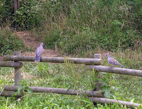 | 市街地の公園や駅前広場,神社仏閣の庭園等で見かけるドバトは,人懐こく群れていることが多いが,キジバトは人を恐れないものの,人とある程度の距離を保ち,一羽かつがいでいることが多く,群れているのは見たことがない。 観音崎公園内で見かけるキジバトもほとんどがつがいで,その仲の良さは鳥ながらヤキモチを焼きたくなるような雰囲気がある。仲の良い夫婦をオシドリ夫婦というが,オシドリは動物園へでも行かないとお目にかかる機会もないので,キジバト夫婦あるいはヤマバト夫婦と呼んだ方が,若い人には解りやすいような気がする。 |