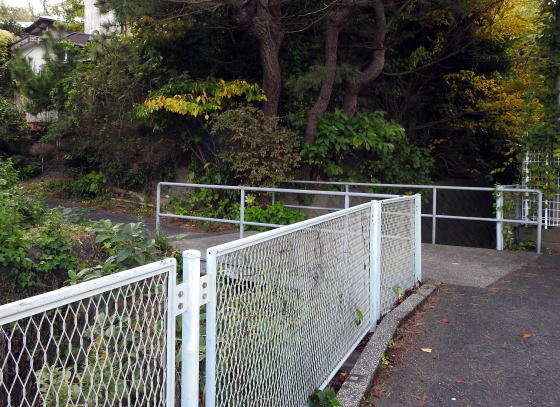 | 川は県道209号(通称観音崎通り)沿いにほぼ平行して流れていますが,観察スポット③の手前に,画像のような建物があるため,川沿いを歩くためには川の左側にある鴨居交番横から入る左側の道を歩くことになります。川底は①の地点とは異なりほぼコンクリート製だが,よく見ると型枠の中に正方形のブロックを2列に並べてあり,ブロックと擁壁の間及びブロック同士の間にも隙間があります。そこは小さな生き物たちの隠れ家になっているに違いありません。更にその先は,割栗石と砂礫土を組み合わせた川底になっています。 | |